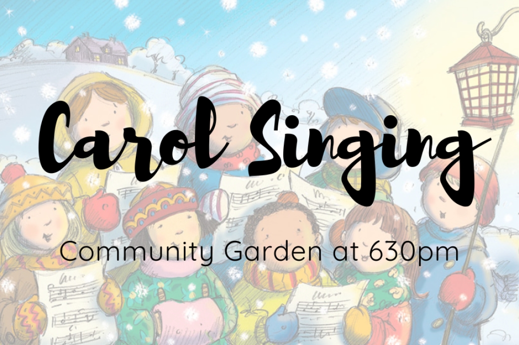 Don’t forget this evening at 6:30pm we join together for carol singing in the community garden.